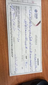 The cheque was delivered to Mrs. Dina Mohamed at the hospital’s donation